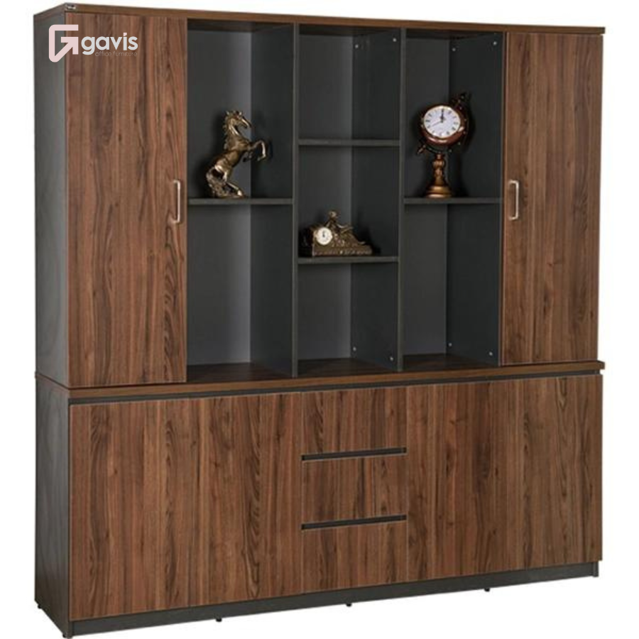 + Tủ tài liệu 4 buồng, phía trên có 02 khoang cánh dài treo áo, 01 khoang giữa có trang trí đợt kệ